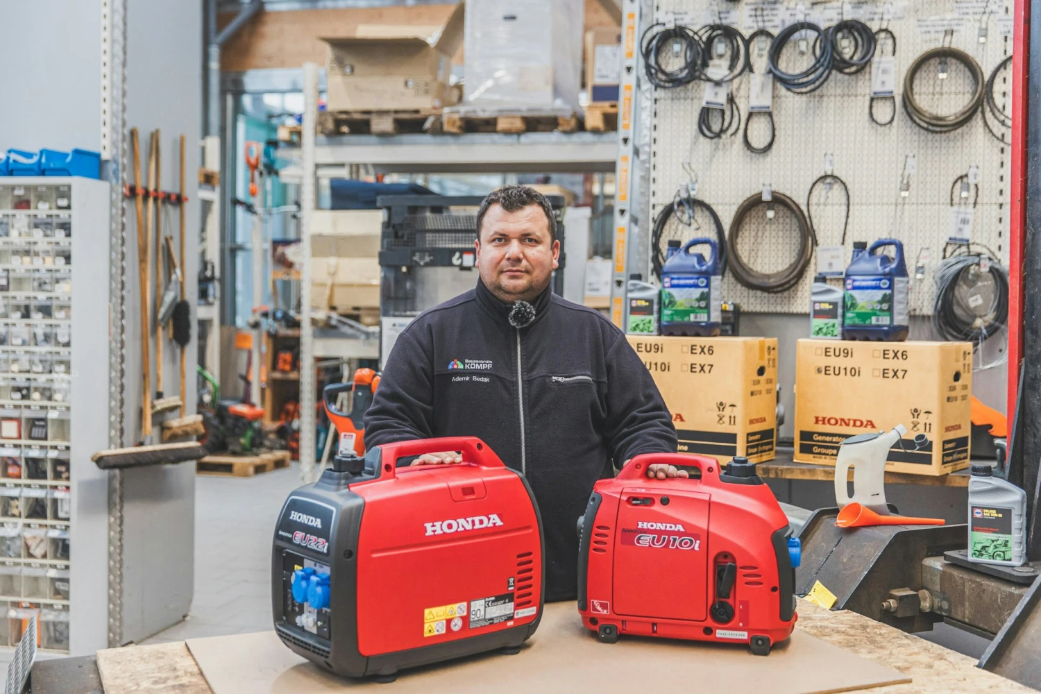 - Ihr Honda Stromerzeuger ist äußerst kompakt und leicht. Und mit dem integrierten Tragegriff können Sie den Stromerzeuger einfach transportieren und aufbewahren.