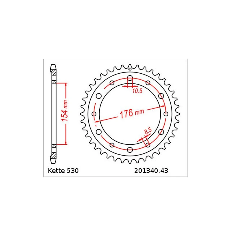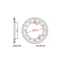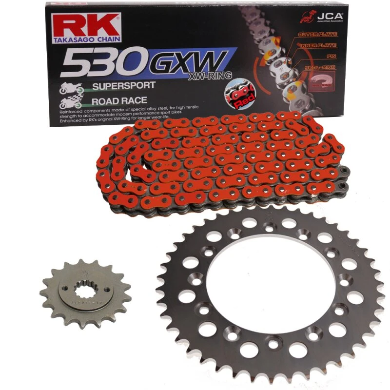 Der Kettensatz enthält eine hochwertige Motorradkette von dem japanischen Erstausrüster RK Takasago Chain, zu dessen herausragenden Eigenschaften die hohe Fertigungsqualität und Haltbarkeit gehören. Eine erstklassige Motorradkette sollte immer auch mit absolut hochwertigen Kettenrädern kombiniert werden.